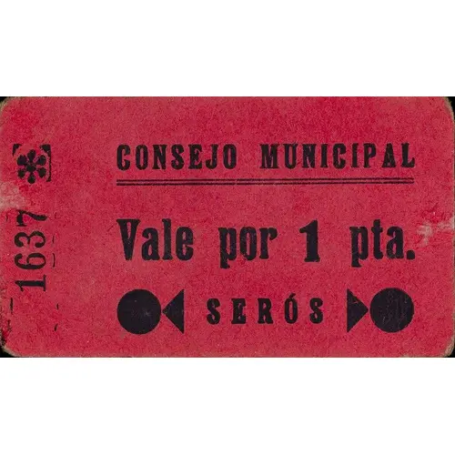 CONSEJO MUNICIPAL Vale por 1 pta. SERÓS (Translation: Municipal Council Voucher for 1 Peseta Serós) |