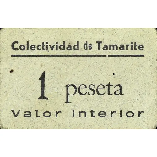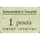 Colectividad de Tamarite 1 peseta Valor interior (Translation: Collectivity of Tamarite 1 Peseta Local value) |