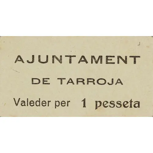 AJUNTAMENT DE TARROJA Valeder per 1 pesseta (Translation: City Council of Tarroja It`s worth 1 Peseta) |