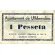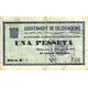 Arka yüz lejandı Ajuntament de Ulldemolins 1 Pesseta Bitllet de circulació obligatòria en tota la jurisdicció municipal