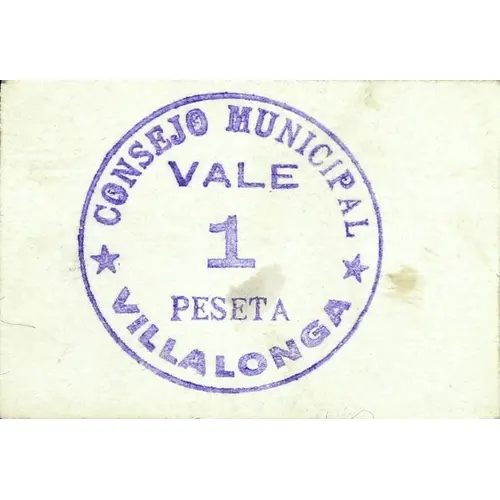 CONSEJO MUNICIPAL VALE 1 PESETA VILLALONGA (Translation: Municipal Council It`s worth 1 Peseta Villalonga) |