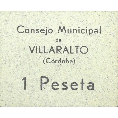 Consejo Municipal de VILLARALTO (Córdoba) 1 Peseta (Translation: Municipal Council of Villaralto (Córdoba) 1 Peseta) |