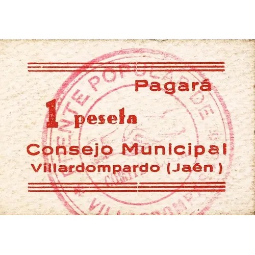 Pagará 1 peseta Consejo Municipal Villardompardo (Jaén) (Translation: Will pay 1 Peseta Municipal Council Villardompardo (Jaén)) |