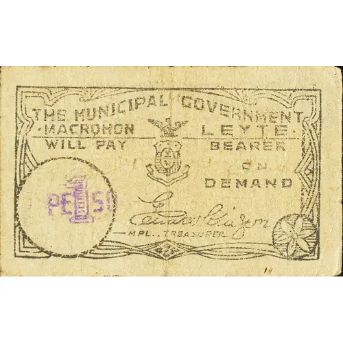 | Obverse lettering | THE MUNICIPAL GOVERNMENT MACROHON LEYTE WILL PAY THE BEARER ON DEMAND 1 PESO |