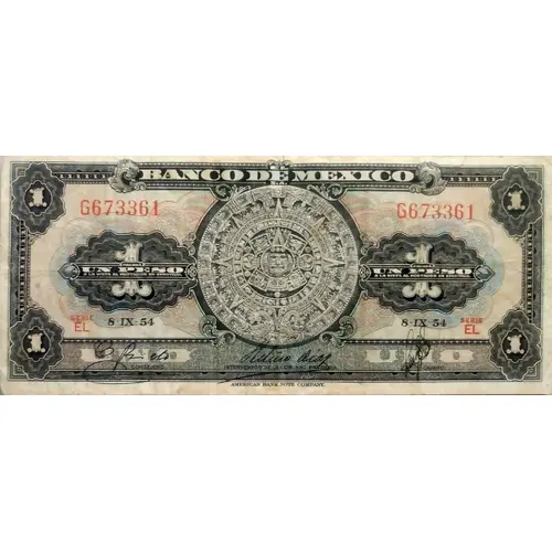 | Obverse lettering | Banco De Mexico Pagara Un Peso A La vista al portador en efectivo (Translation: Bank of Mexico Pay One Peso on sight to the bearer in cash) |