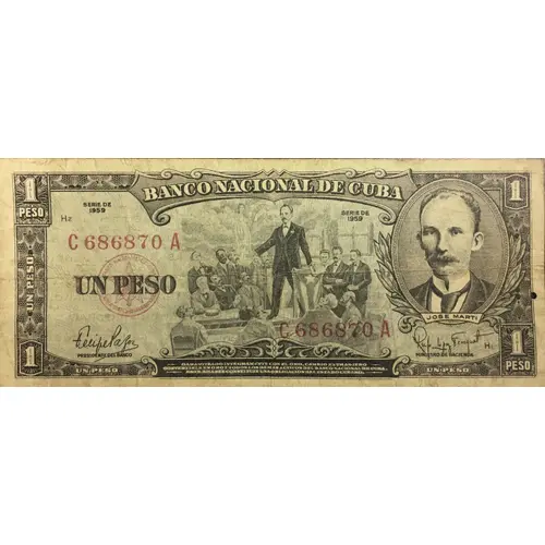 BANCO NACIONAL DE CUBA UN PESO JOSÉ MARTÍ GARANTIZADO INTEGRAMENTE CON EL ORO, CAMBIO EXTRANJERO CONVERTIBLE EN ORO Y TODOS LOS DEMÁS ACTIVOS DEL BANCO NACIONAL DE CUBA. ESTE BILLETE CONSTITUYE UNA OBLIGACIÓN DEL ESTADO CUBANO. (Translation: National Bank of Cuba One Peso José Martí Fully Guaranteed with the gold, foreign exchange. Convertible into gold and all the other assets of the National Bank of Cuba This note constitutes an obligation of the Cuban State.) |