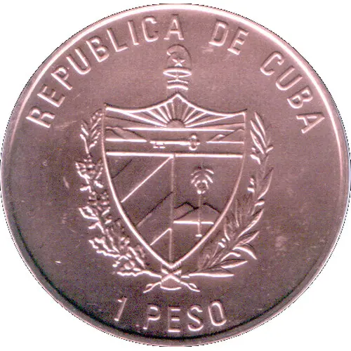 Artistry: The design, though the engraver is not publicly attributed, aligns with a commemorative realist style prevalent in Cuban numismatics. The obverse typically features the national coat of arms, embodying Cuban sovereignty. The reverse depicts the iconic meeting between Fidel Castro and Ernest Hemingway. This portrayal likely captures the two figures, possibly in a fishing context, emphasizing their shared moment. The artistic execution aims for recognizable likenesses, serving as both historical record and tribute to a significant cultural exchange.