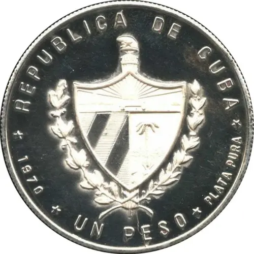 | Opschrift voorzijde | REPUBLICA DE CUBA 1970 UN PESO PLATA PURA (Translation: Republic of Cuba One Peso, Pure Silver) |