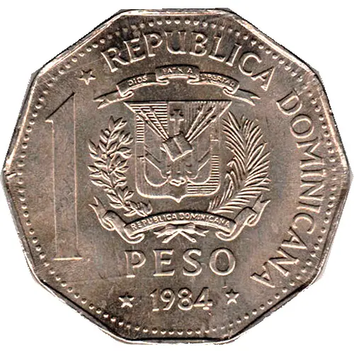 | Obverse lettering | REPUBLICA DOMINICANA 1 PESO DIOS PATRIA LIBERTAD REPUBLICA DOMINICANA (Translation: Dominican Republic God Fatherland Liberty Dominican Republic) |