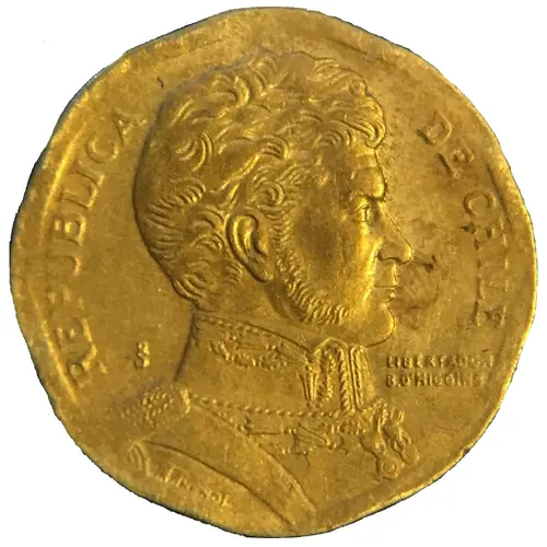 | Obverse lettering | REPUBLICA DE CHILE So LIBERTADOR B O`HIGGINS R.THENOT |