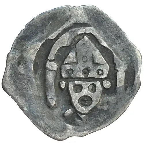 Obverse description Facing bishop wearing mitra within arch.