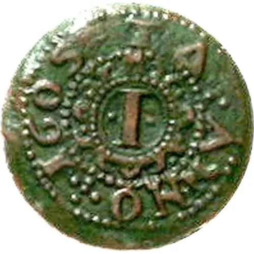 | Reverse description | Value small • I • in double ornamented oval of pellets, date in legend. |