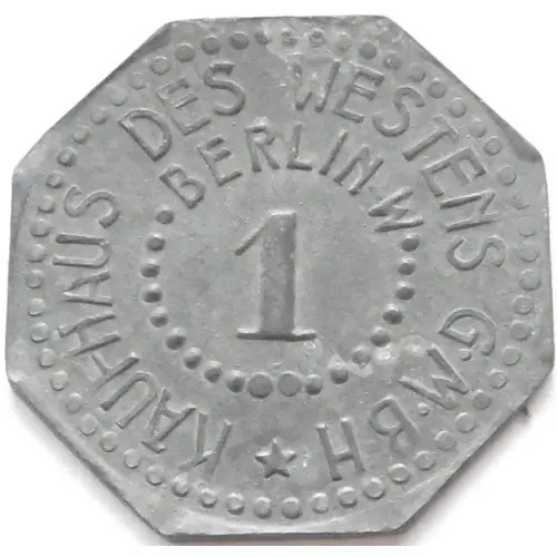 | Obverse lettering | KAUFHAUS DES WESTENS G•M•B•H• BERLIN-W 1 ★ |