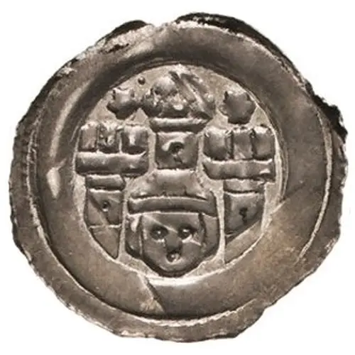 | Obverse description | Facing bust with mitra with three towered fortified building above. |