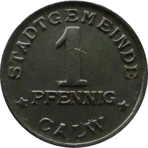 | Obverse lettering | STADTGEMEINDE 1 PFENNIG ★ CALW ★ |