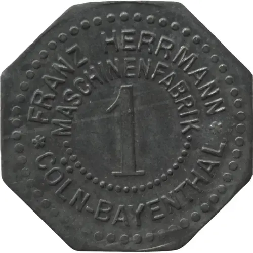 | Obverse lettering | FRANZ HERRMANN MASCHINENFABRIK 1 ✿ CÖLN-BAYENTHAL ✿ |