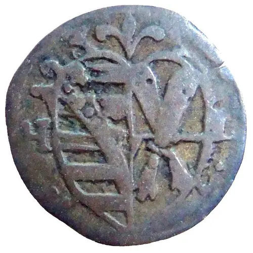| Obverse description | Coat of arms divides initials of mint master, with year above. |