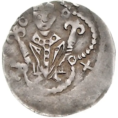 Obverse description Bishop facing and holding two lilly scepter´s within quatrefoil.