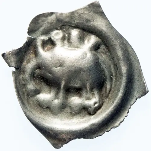 Description de l’avers Elephant striding to the left, three humps on its back. beaded strip.