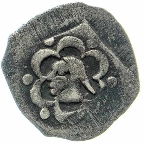 | توضیحات روی سکه | Monk`s head in profile to the left in six-pointed fun, with a dot in each of the outer corners. |