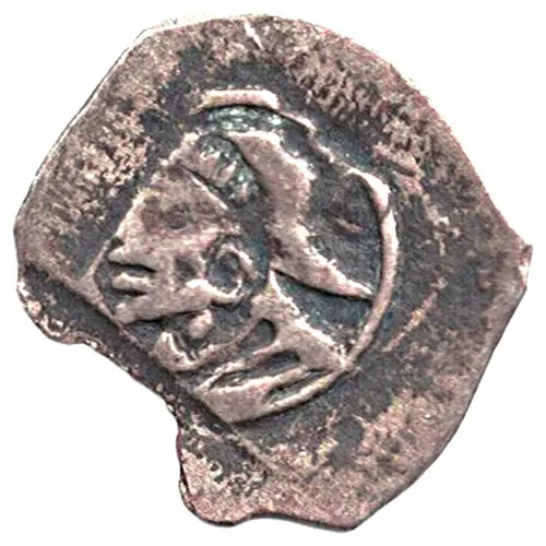 | Obverse description | Monk`s head left in line circle. |