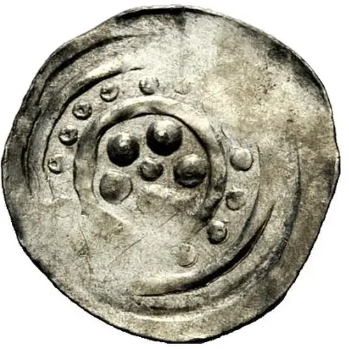 | Obverse description | 5 petalled rose within circle, dots surrounding. |