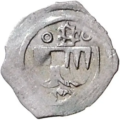 | 正面描述 | Adjacent arms of Zollern and Würzburg, Gothic letter above between two rings. |
