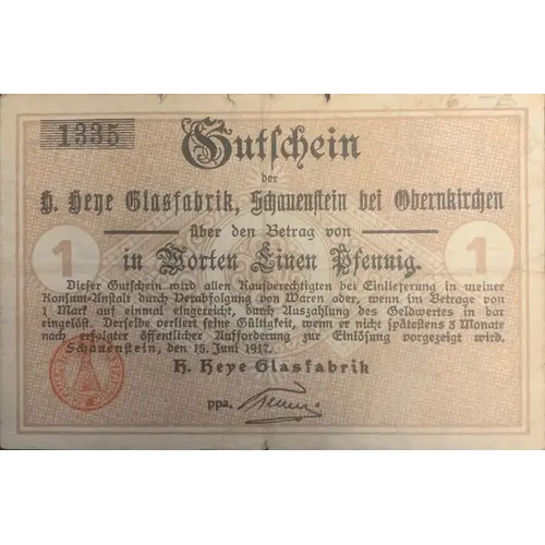 1 Pfennig H. Heye Glasfabrik Schauenstein