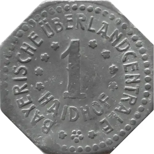 | Obverse lettering | BAYERISCHE ÜBERLANDCENTRALE 1 HAIDHOF |