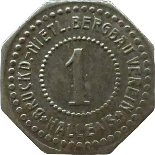| Obverse lettering | BRUCKD.-NIETL BERGBAU VEREIN 1 HALLE A/S |