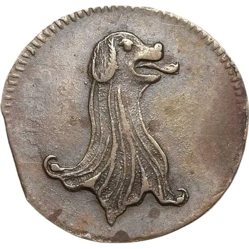 | Reverse lettering | I PFENNIG G.R.P.GE. RAISCHE L.M. 1761 |