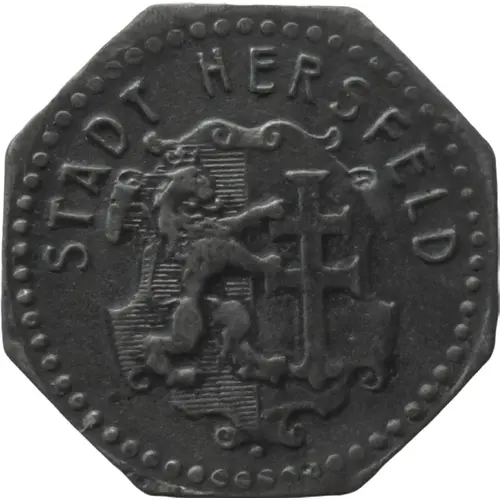 | Obverse description | Pearl rim, city name half circled above Coat of Arms. |