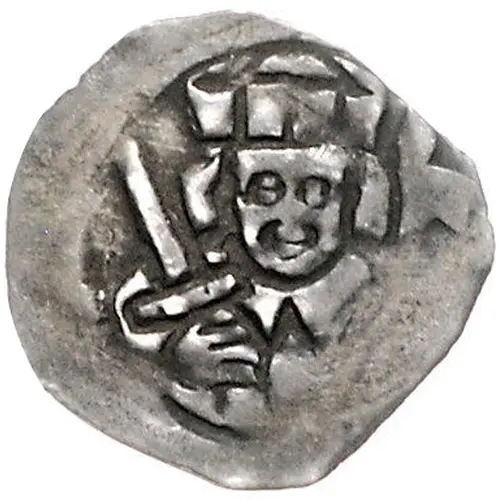 | توضیحات روی سکه | Facing bishop holding sword and flag. |