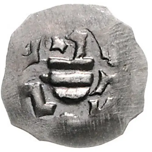 | Aversbeschreibung | Arms with three lettered inscription surrounding within trefoil. |
