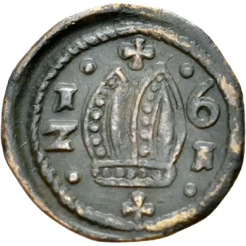 | Obverse description | Mitra seperating date to sides, cross with dots to sides at bottom. |