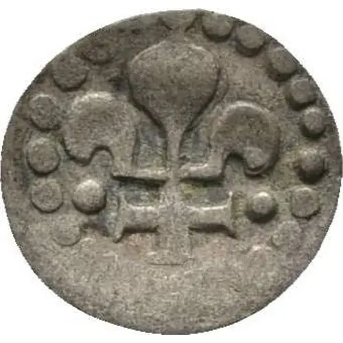 | Obverse description | Lilly with bottom shaped as a cross, two dots to the sides. |