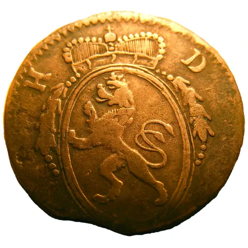| Obverse description | Crowned oval arms; H. D. flank crown |