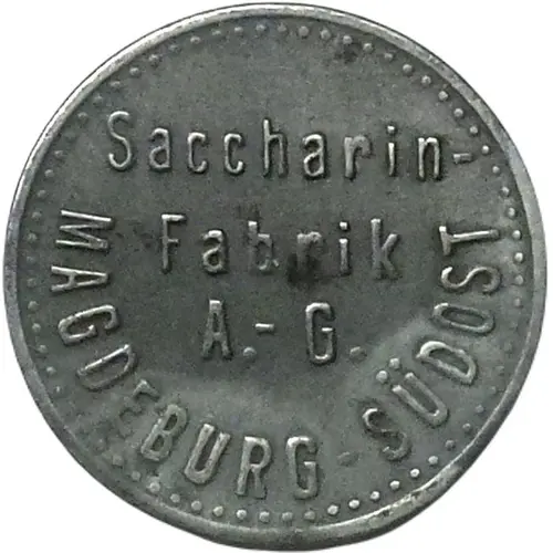 | Obverse lettering | Saccharin- Fabrik A.-G. MAGDEBURG-SÜDOST |