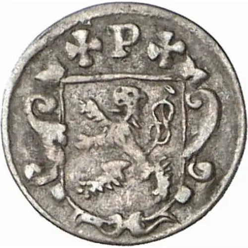 | Obverse description | Ornate shield with Archbishop`s arms, above, 2 crosses and the letter P. |