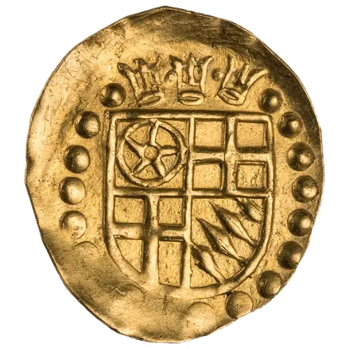 Obverse description 4-fold arms of Mainz, Cologne, Trier, and Bavaria, 3 crowns above, all in circle of pellets.