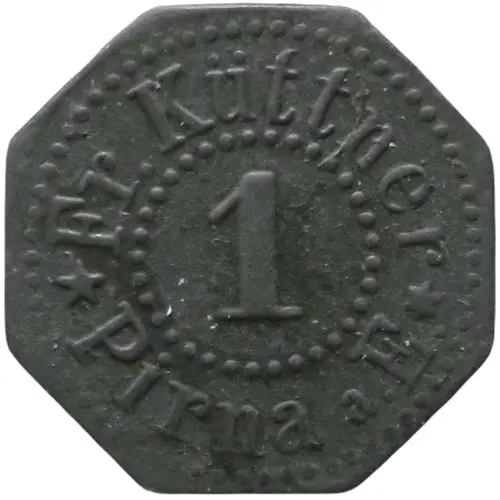 | Obverse lettering | Fr. Küttner 1 ★ PIRNA a. E. ✶ |