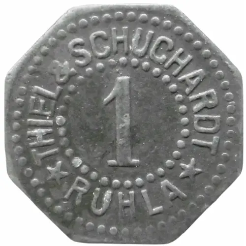 | Obverse lettering | THIEL & SCHUCHARDT 1 ★ RUHLA ★ |