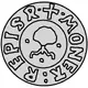 | Obverse description | Wavy shield with right half shaded within circle and over a cross that divides the surrounding legend into four sections. |