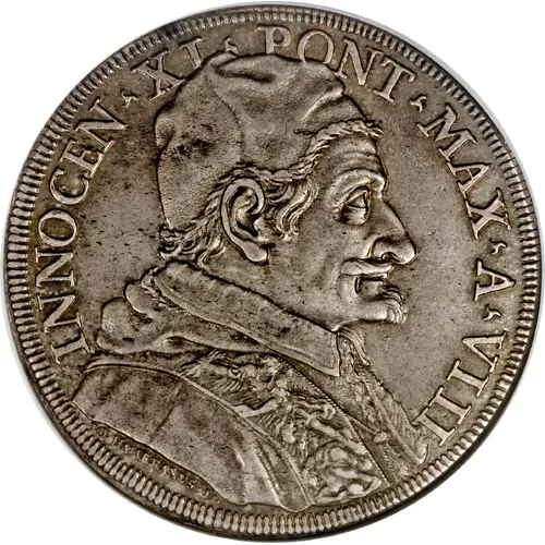 | Obverse lettering | INNOCEN·XI·PONT·MAX·A·VIII (Translation: Innocent 11th Supreme Pontiff Year 8) |