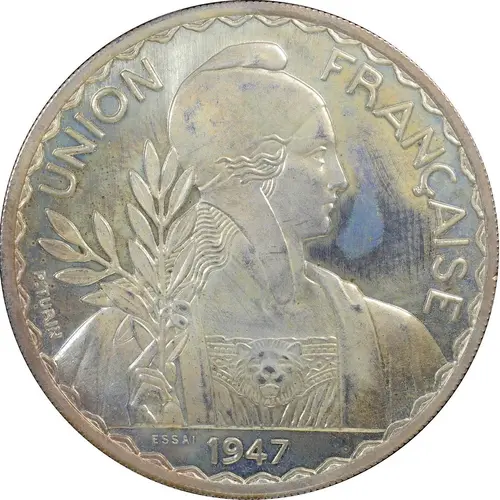 | Leyenda del anverso | UNION FRANÇAISE 1947 P.TURIN ESSAI (Translation: French Union Trial) |