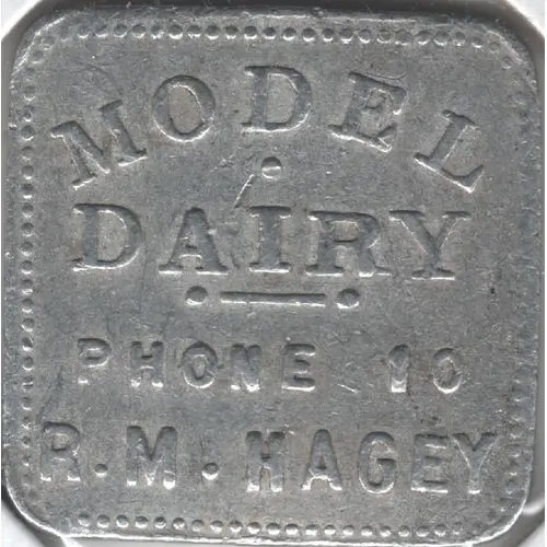 | Obverse lettering | MODEL DAIRY PHONE 10 R. M. HAGEY |
