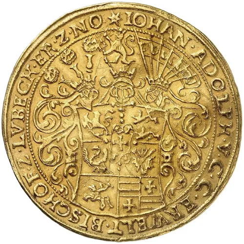 | Leyenda del anverso | IOHAN • ADOLPH • V • G • G • ERWELT • BISCHOF • Z • LVBECK • ER • Z • NO (Translation: John Adolphus, by the grace of God, elected Bishop of Lübeck, heir to Norway...) |