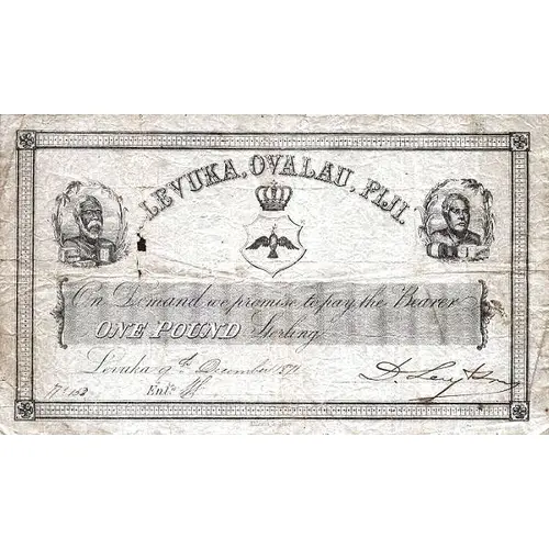 | نوشتههای روی اسکناس | LEVUKA, OVALAU, FIJI On Demand we promise to pay the Bearer ONE POUND Sterling |