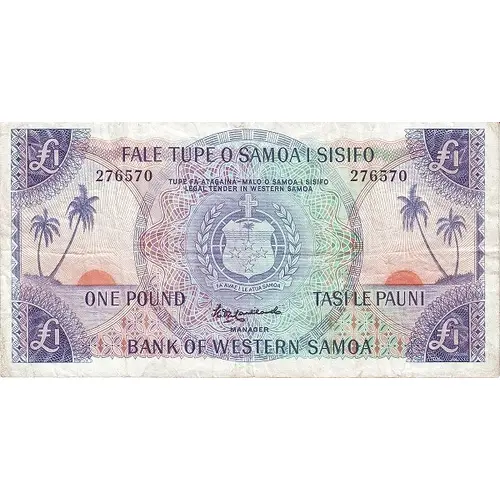 | نوشتههای پشت اسکناس | FALE TUPE O SAMOA I SISIFO ONE POUND TASI LE PAUNI BANK OF WESTERN SAMOA (Translation: Western Samoa Bank, One Pound) |