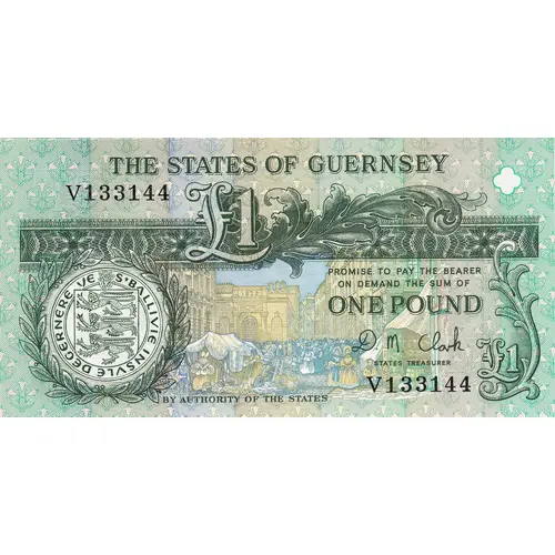 Obverse lettering THE STATES OF GUERNSEY £ 1 Promise to pay the Bearer on demand the sum of ONE POUND By Authority of The States